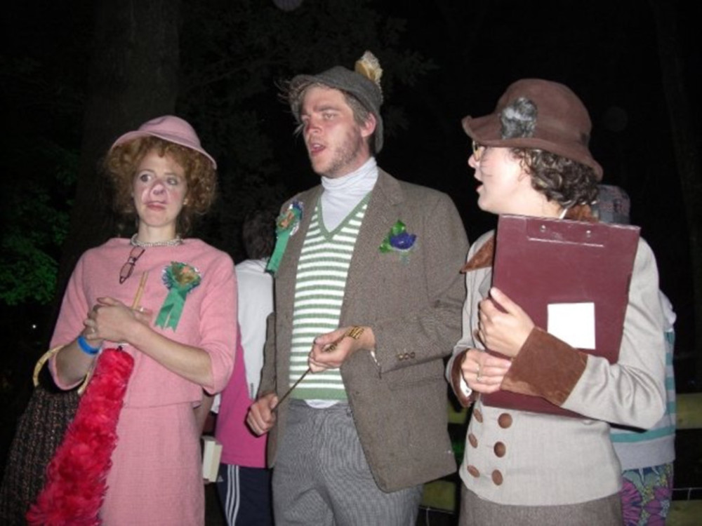 What’s more, it was festival time. So prize vegetables, talents and garlands were brought and Parish meetings were held in the shed. But meanwhile the shadowy Sheep Party were planning their Election Victory while the villagers squabbled in the shed and danced around the jam jars.